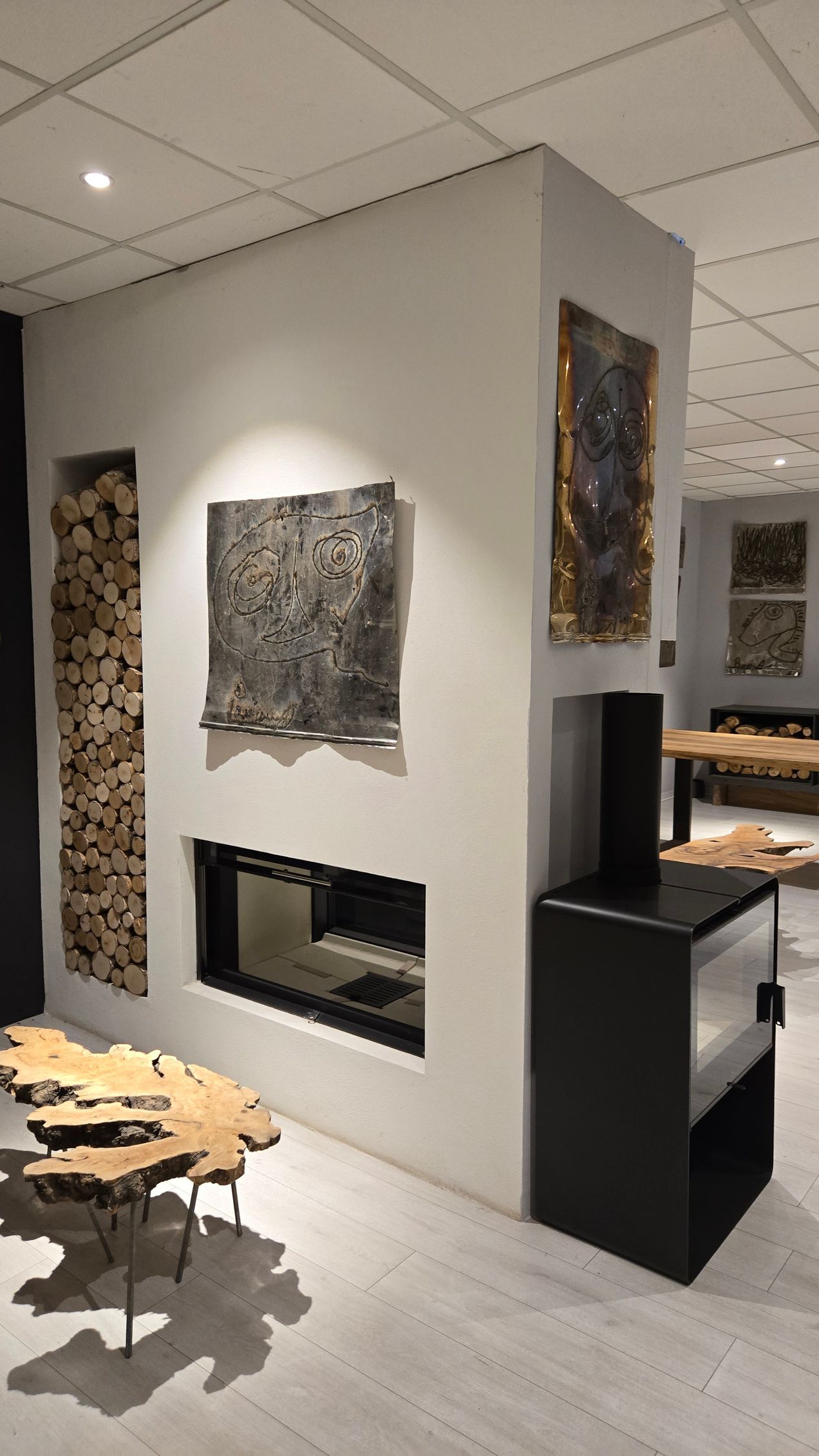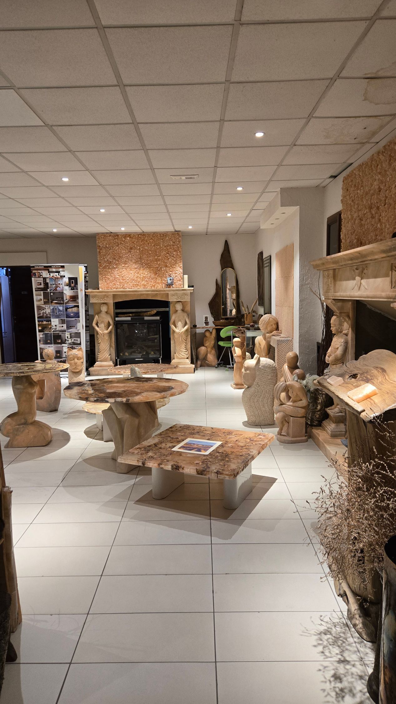 Accanto ai caminetti e alle stufe, la produzione comprende complementi d’arredo in ulivo Natural Design, dove la lavorazione del legno valorizza forme e venature uniche. Ogni pezzo è concepito come elemento decorativo capace di completare e arricchire lo spazio circostante. La stessa cura è applicata alla realizzazione di sculture in marmo, pietra o granito, studiate per l’interno o per l’esterno e modellate su richiesta del cliente.