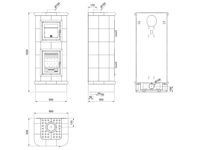 - Camera di combustione in ghisa (HxLxP - 317x289x342)